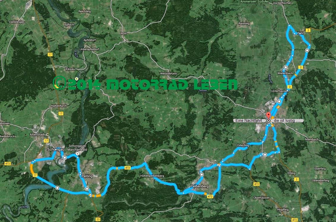 Unangenehm wurde es dann auf der B 17 (Umgehung Schongau-Peiting), als ich den Lech überqueren musste. Dort zog Nebel auf. Richtig fette Nebelschwaden. Auch auf dem Rückweg durch Schongau selber ebenso wie in Peiting, war es stellenweise extrem nebelig. Wenn dann zudem noch das Visier beschlägt, hat frau irgendwann richtig Stress. Und wenn frau dann in diesem Moment in einer senke beim Abbiegen ist, runterschalten und gleichzeitig abblenden muss, dann geht einem schon mal der Puls so richtig hoch.