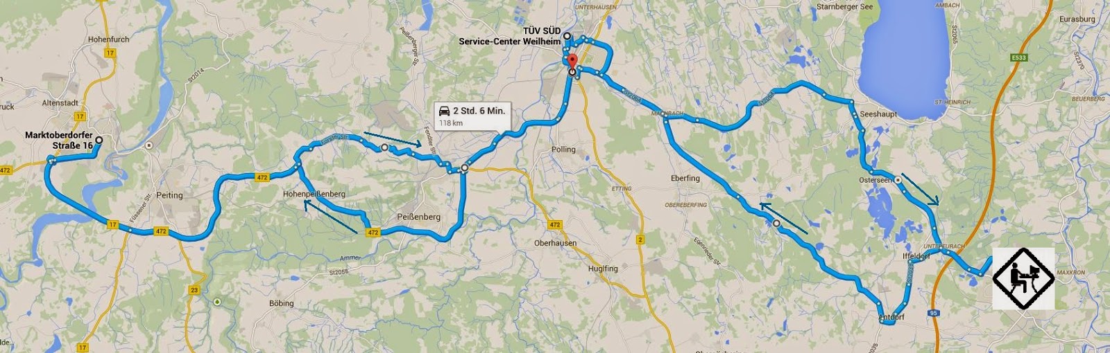 Wir haben uns dann geeinigt, dass ich selber vorbeikomme und er noch einmal in meiner Gegenwart misst. Vor Ort. Beim TÜV. Unter den Vorgaben, denen so eine Messung unterliegt. Nach diesem Telefonat war ich erst einmal „ein wenig“ geschockt. Das klingt nun völlig anders. Also habe ich dann im Anschluß daran bei dem einzigen BMW Schrauber hier in der Gegend angerufen und einen ganz kurzfristigen Termin zugesagt bekommen. Danach also rein ins Leder, auf Gelbschen und ab zum TÜV-Süd. Franz–Xaver Hintertupfinger erwartete mich auch schon grinsend auf dem Hof mit den Worten „Ich habe Sie kommen hören.“ Ja, schön. Nett. Danke. Und nun? Nun wurde im TÜV Messstand gemessen. Mit exaktem Abstand und geeichtem Gerät.